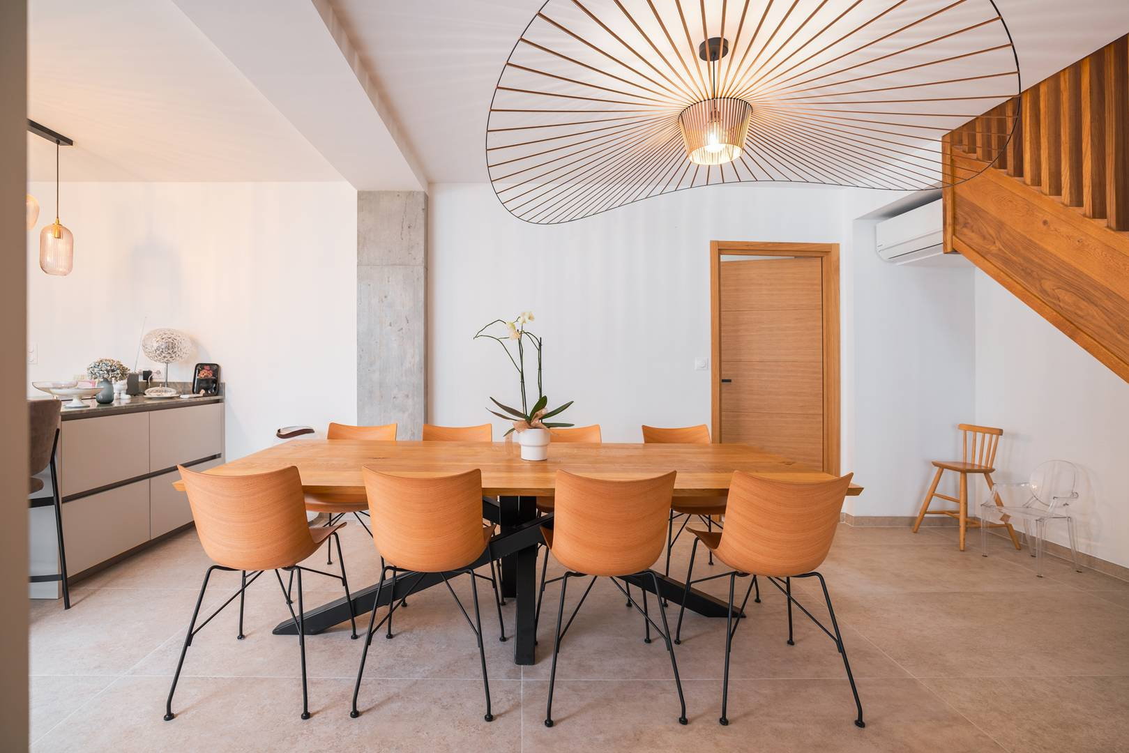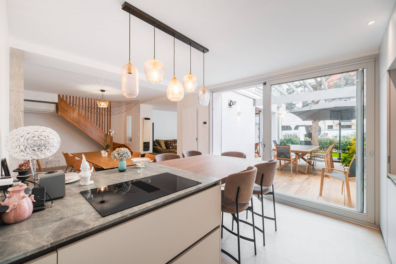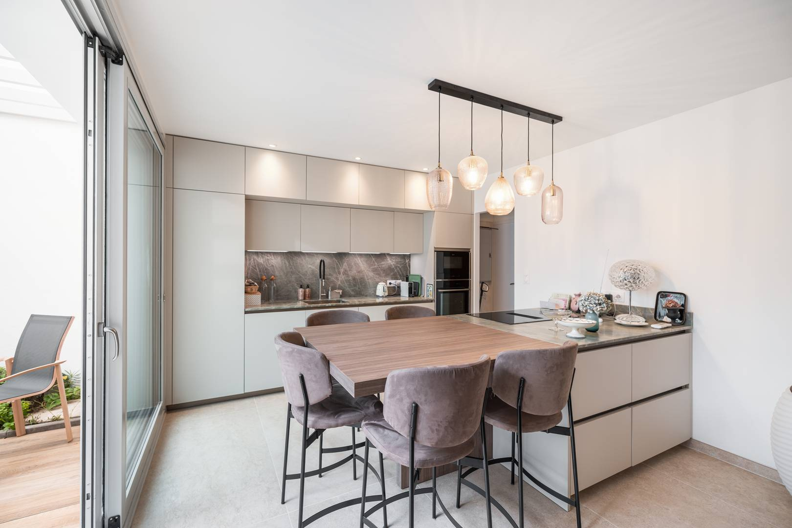 Cuisine entièrement équipée avec machine à café Nespresso, lave-vaisselle et machine à laver/séchante.