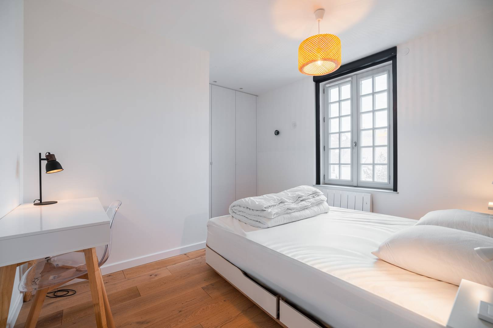 1 chambre avec lit double (160x200 cm) avec dressing, coin bureau et salle de douche.