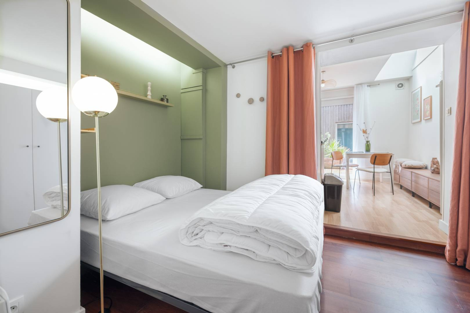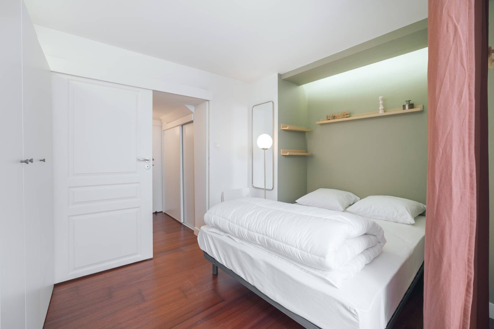 • Une chambre avec un lit double (140 cm) et rangements intégrés