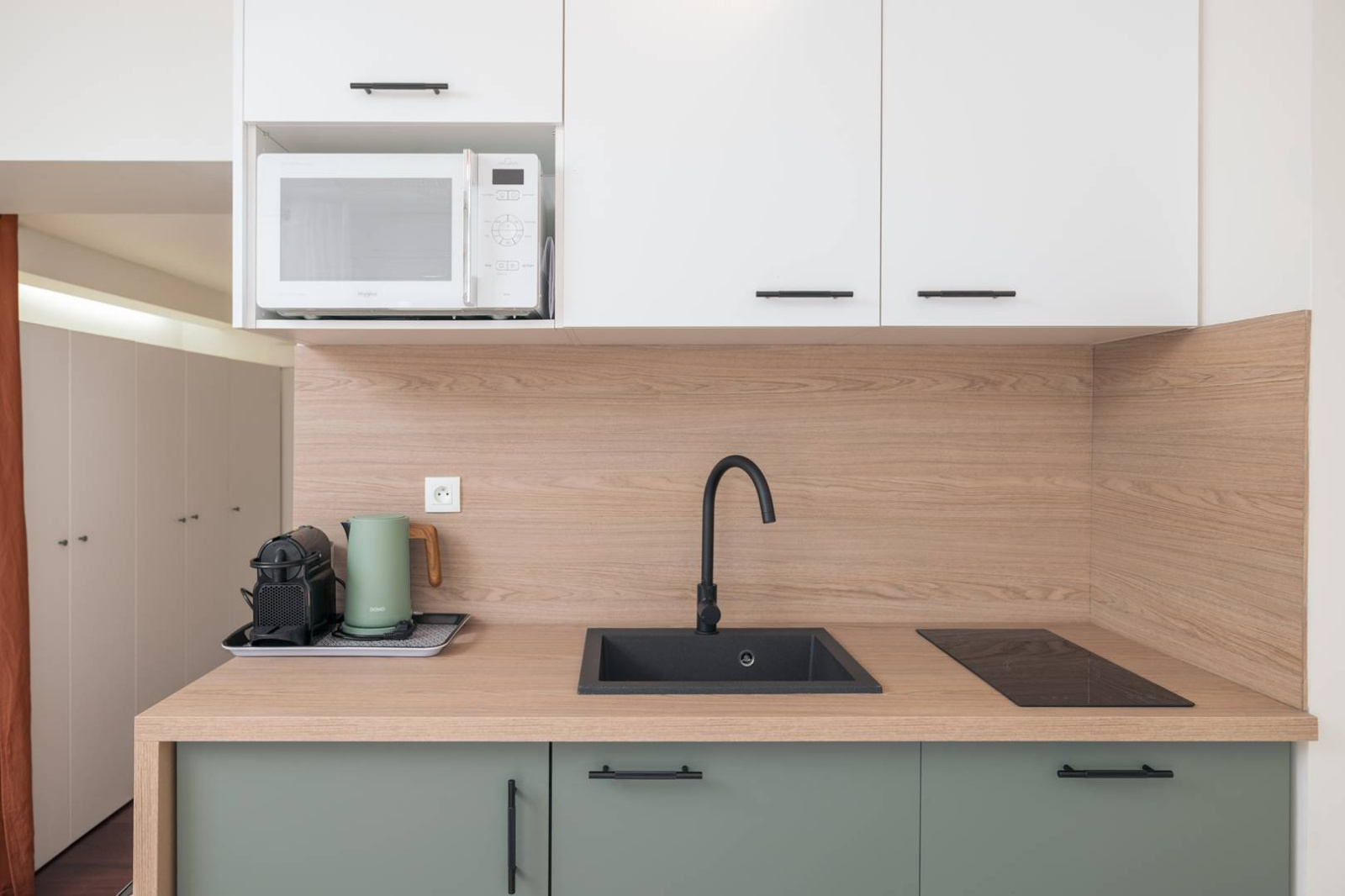 • Une kitchenette équipée (plaque, micro-ondes, vaisselle, etc.)