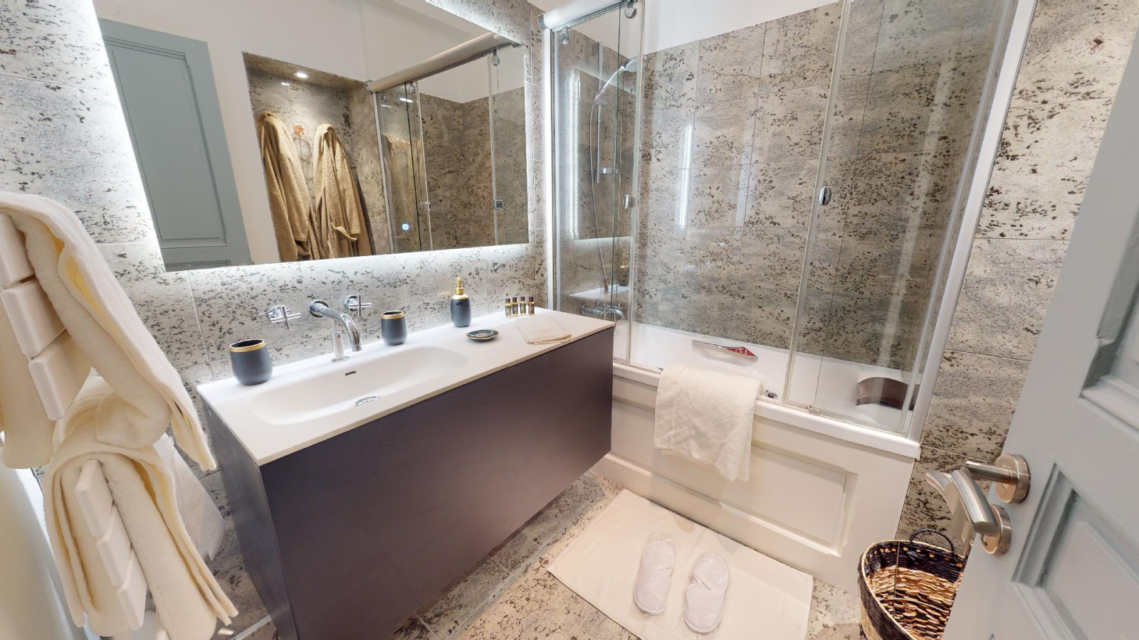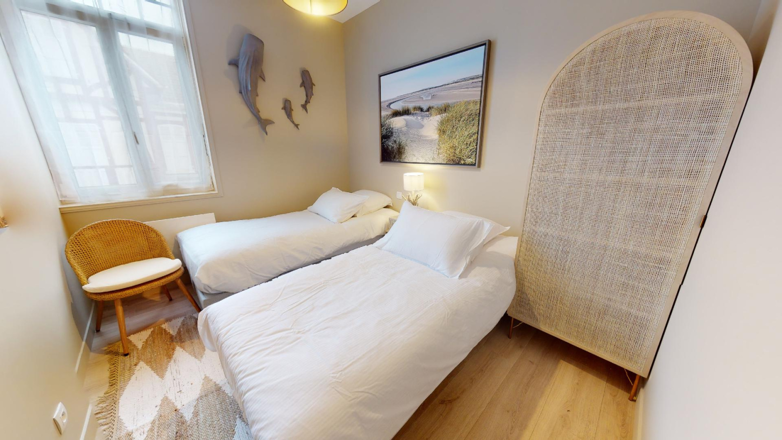 Ambiance moderne pour cet appartement rénové pouvant accueillir4 personnes avec deux magnifiques chambres. Vous apprécierez sa cuisine aménagée, son salon décoré avec soin et sa salle de bain chic. Ses atouts : un bow window duquel on aperçoit le marché, la mer et surtout... une terrasse privative avec jacuzzi.