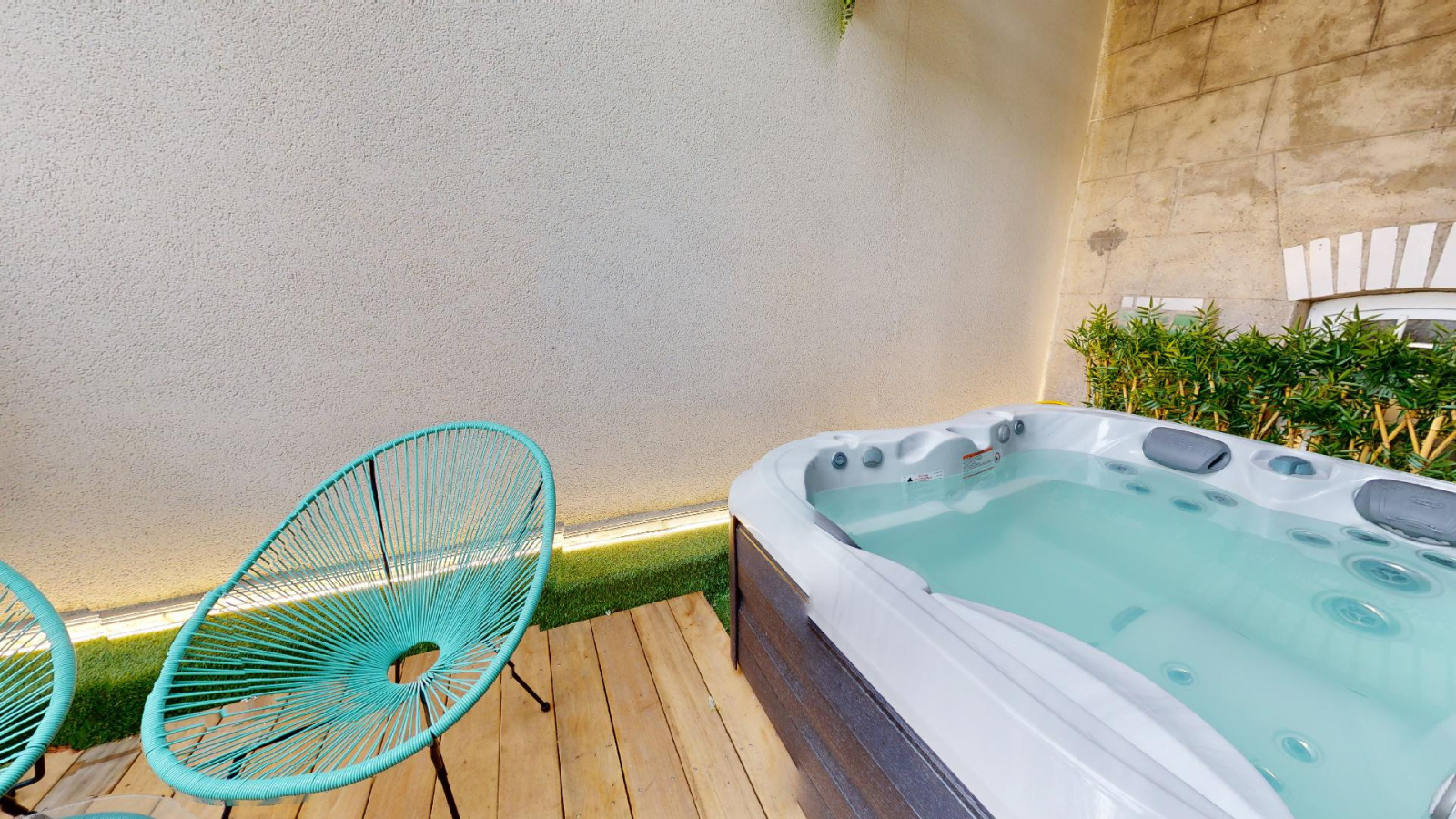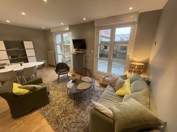 Beau séjour avec cuisine ouverte et aménagée, deux belles chambres , l'une avec lit double de 160 cm et l'autre avec 2 lits simples pouvant être rapprochés.Jacuzzi et terrasse privative.