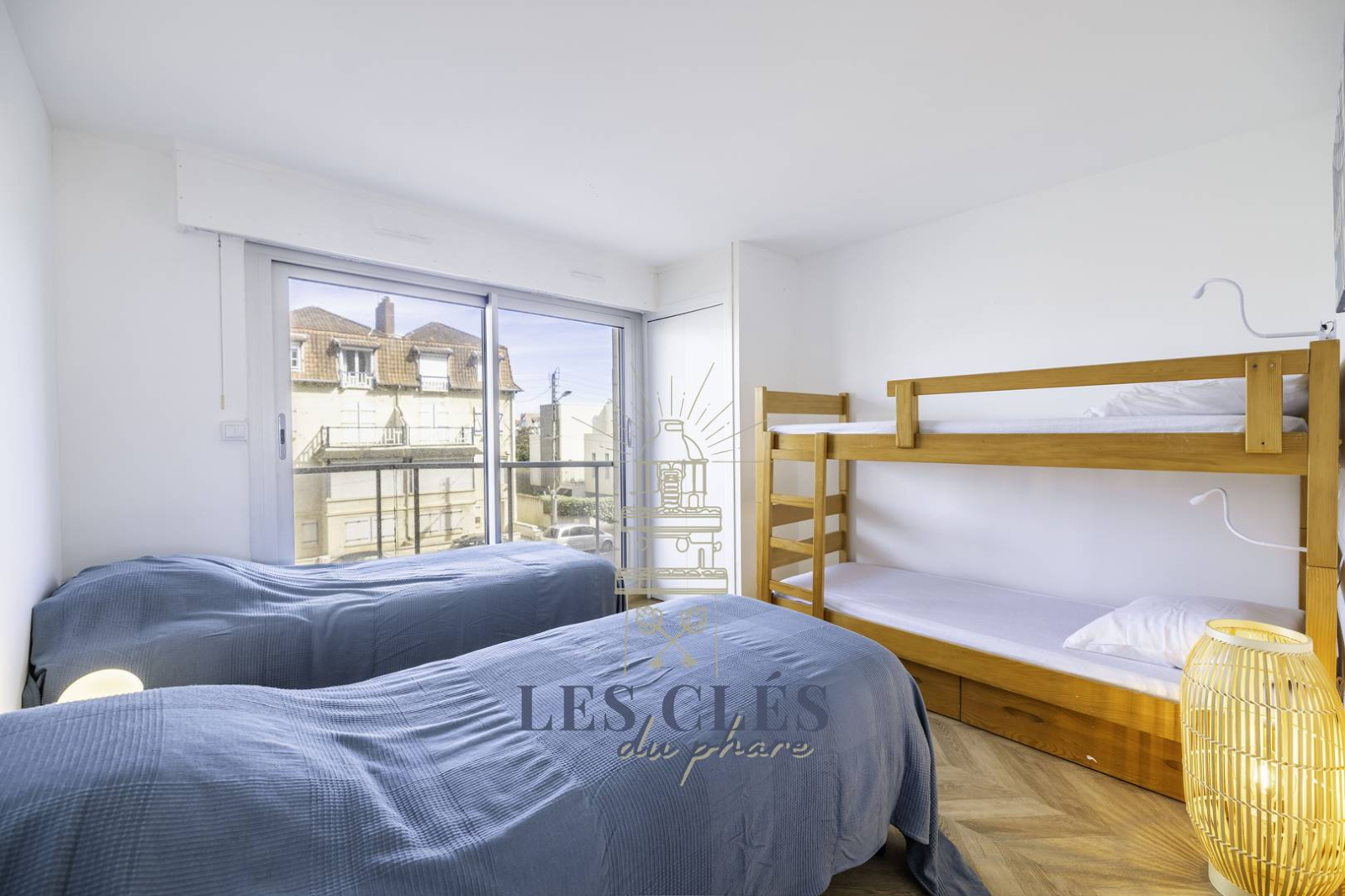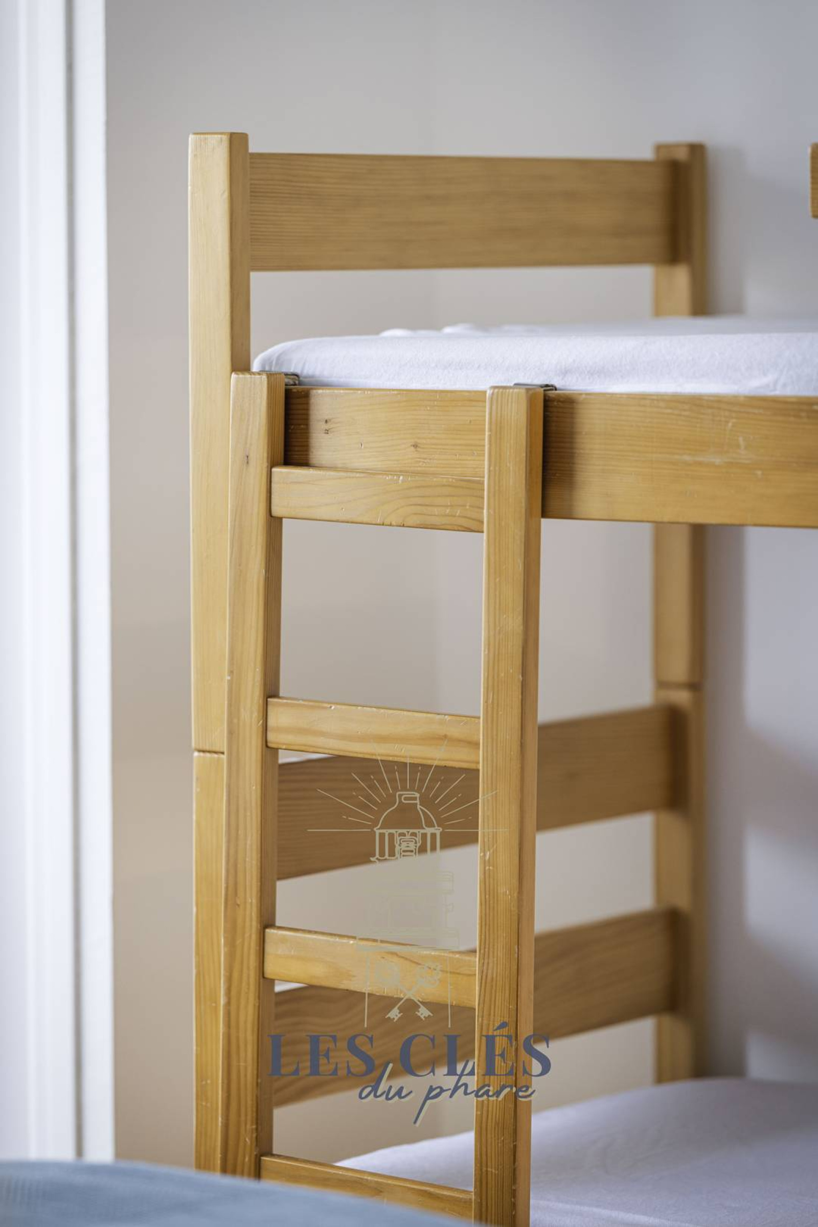 1 chambre avec 2 lits simples (90 cm) rapprochable et 1 lit superposés.