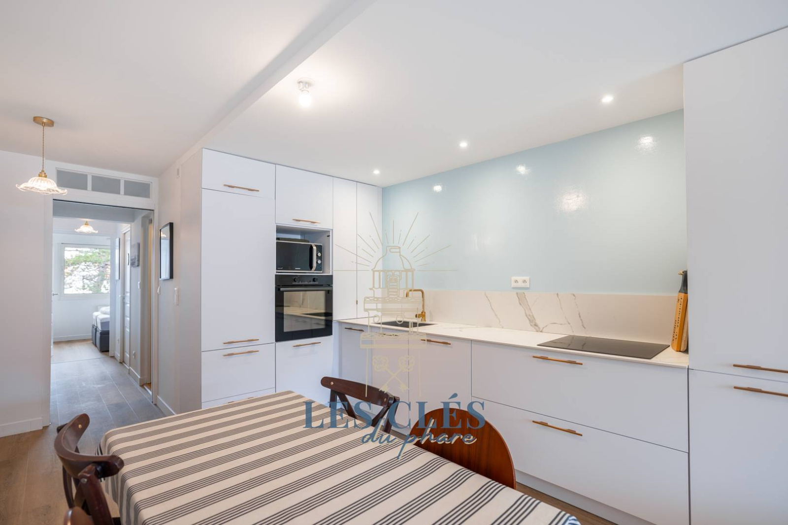 Cuisine neuf, entièrement équipé ouverte sur le salon.