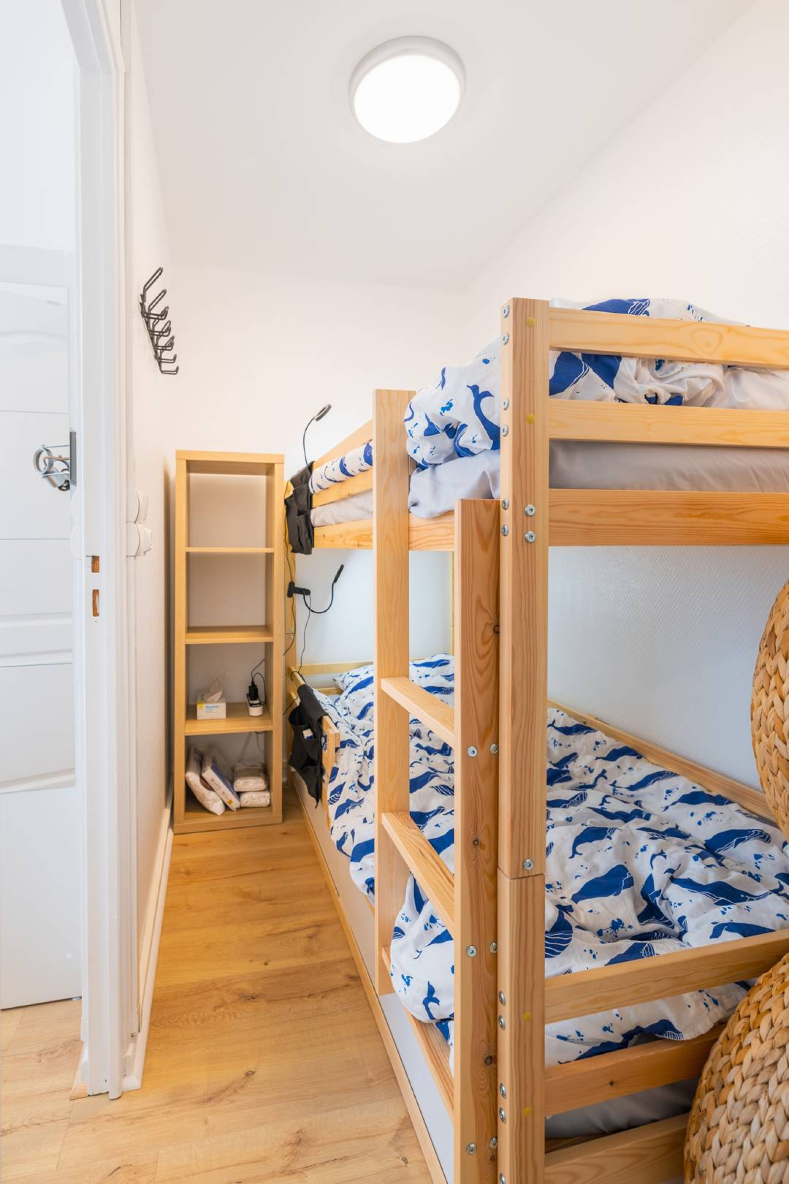 1 Chambre cabine avec 1 lit superposé (80x190 cm) avec rangement.