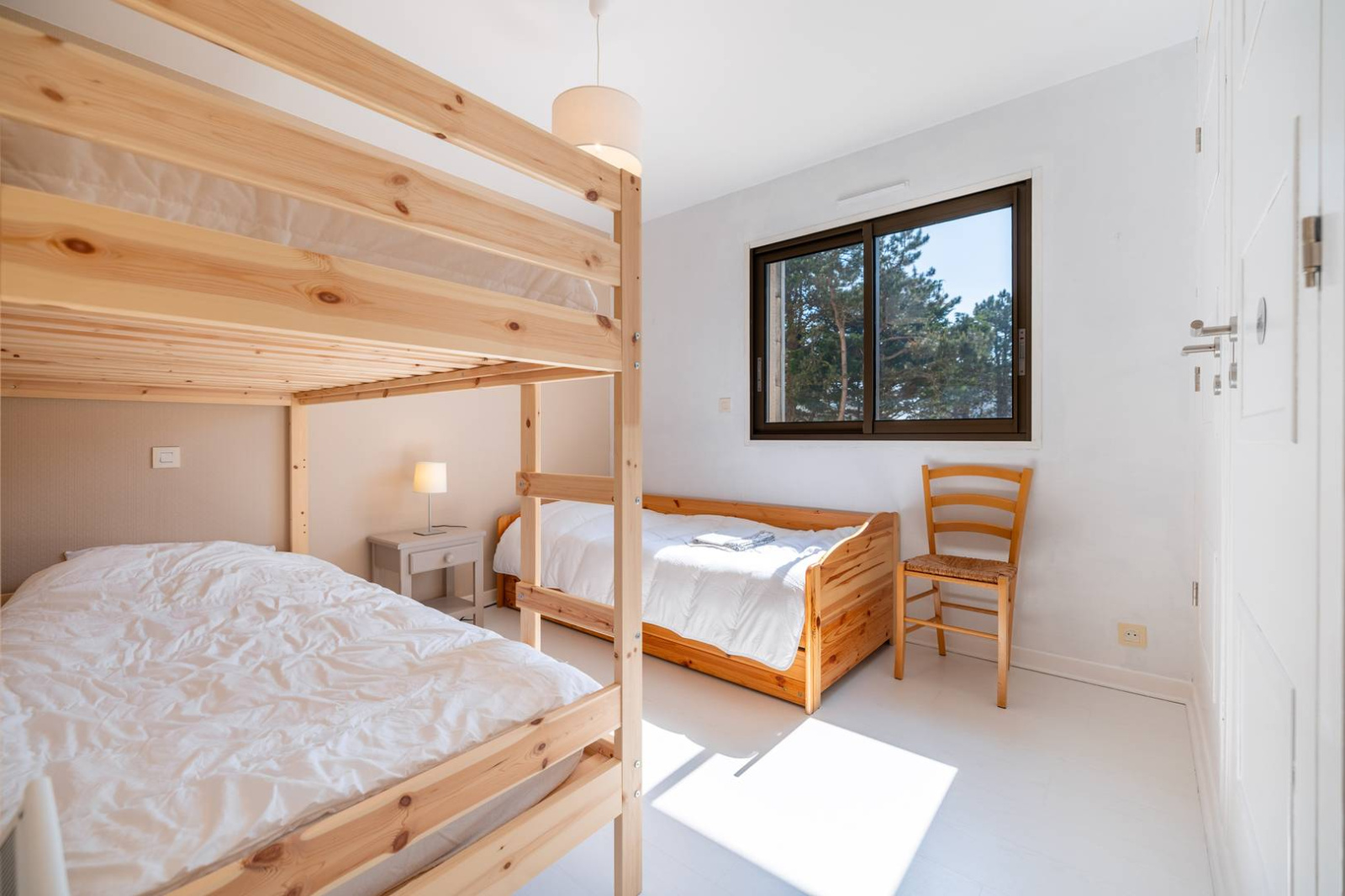 Une chambre avec 1 lit superposé (90x190cm) et 1 lit simple (90x190cm)
