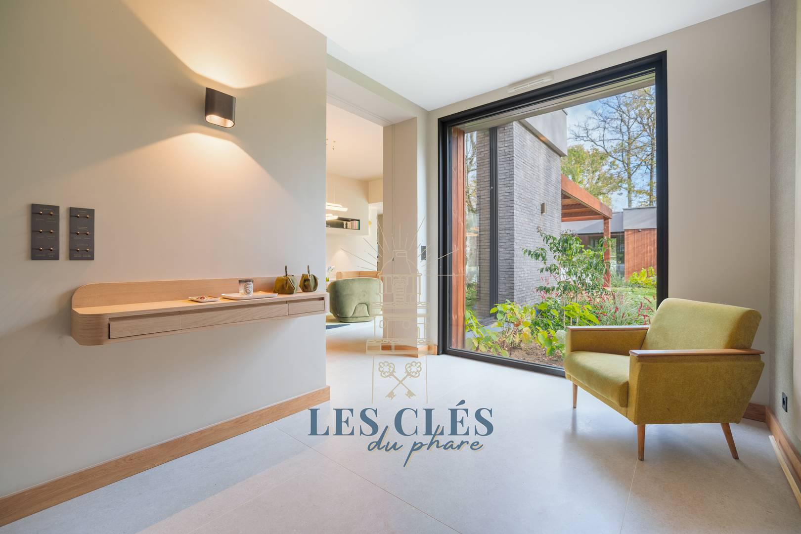 Grand salon lumineux et spacieux avec cheminée et accès au jardin et à la terrasse.