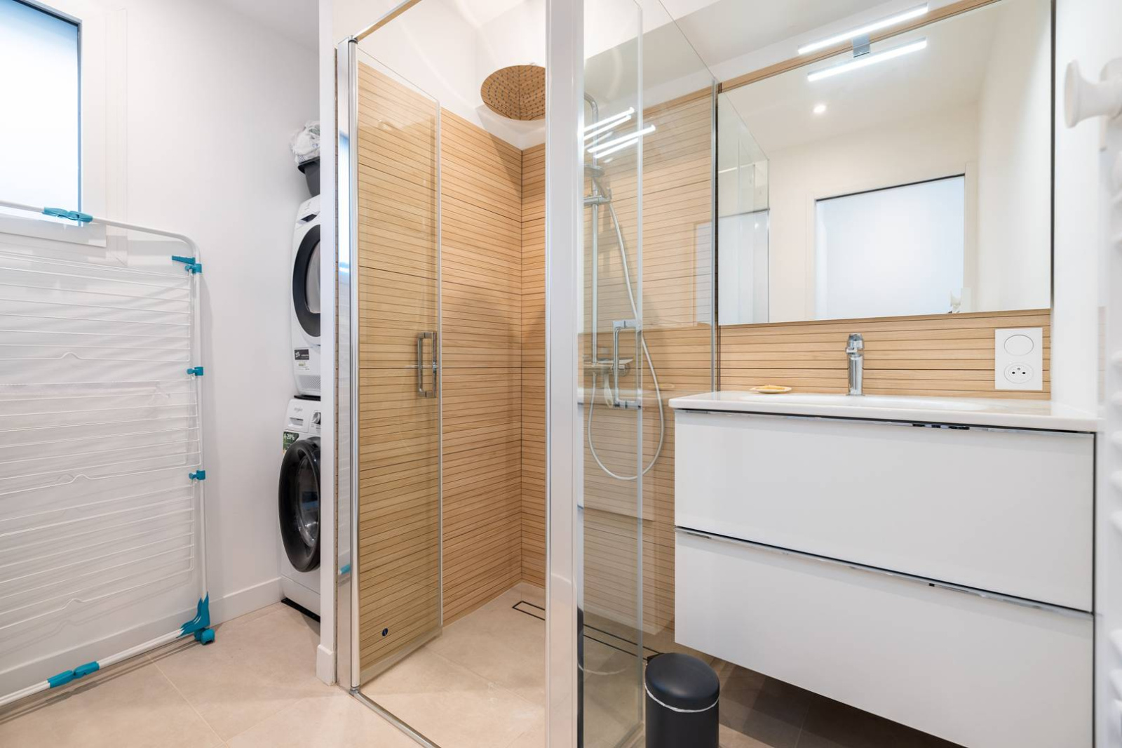 Buanderie (machine à laver + sèche linge avec salle de douche.