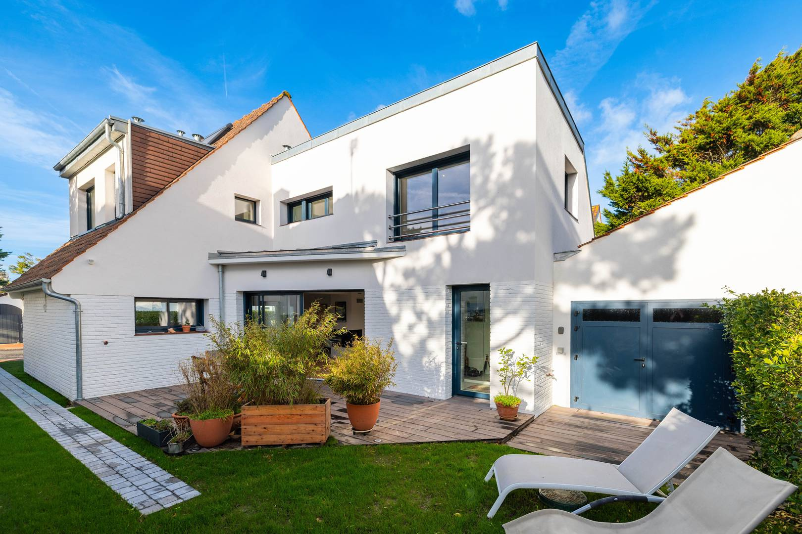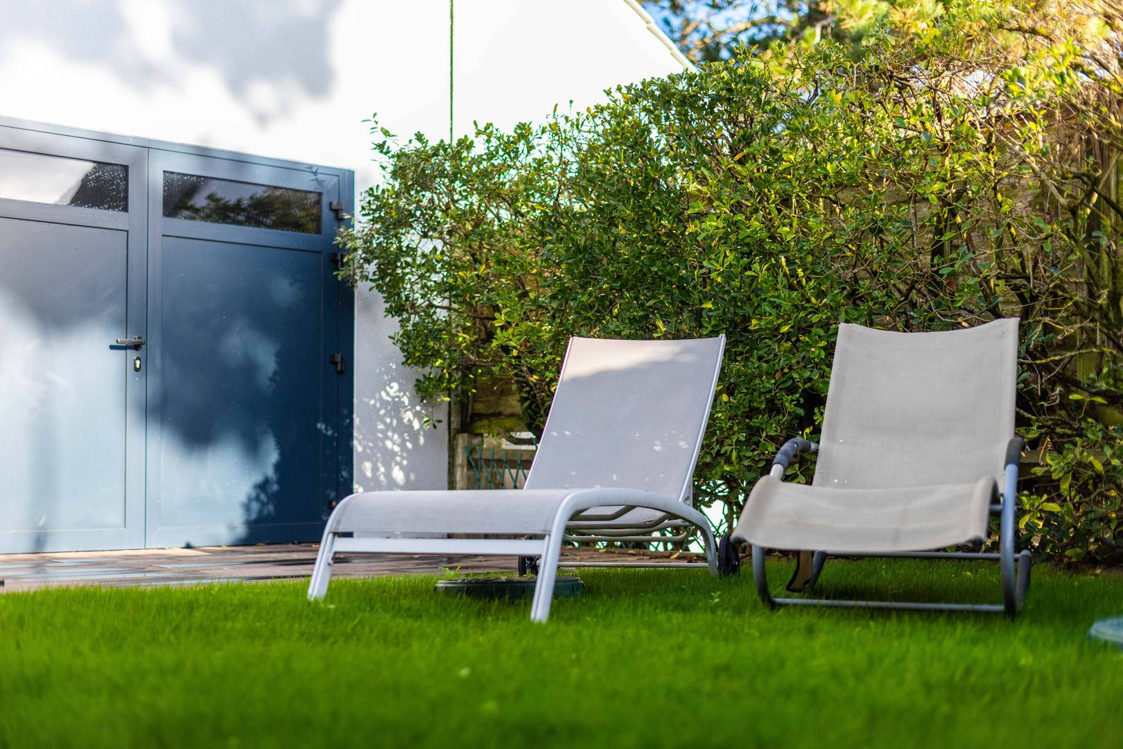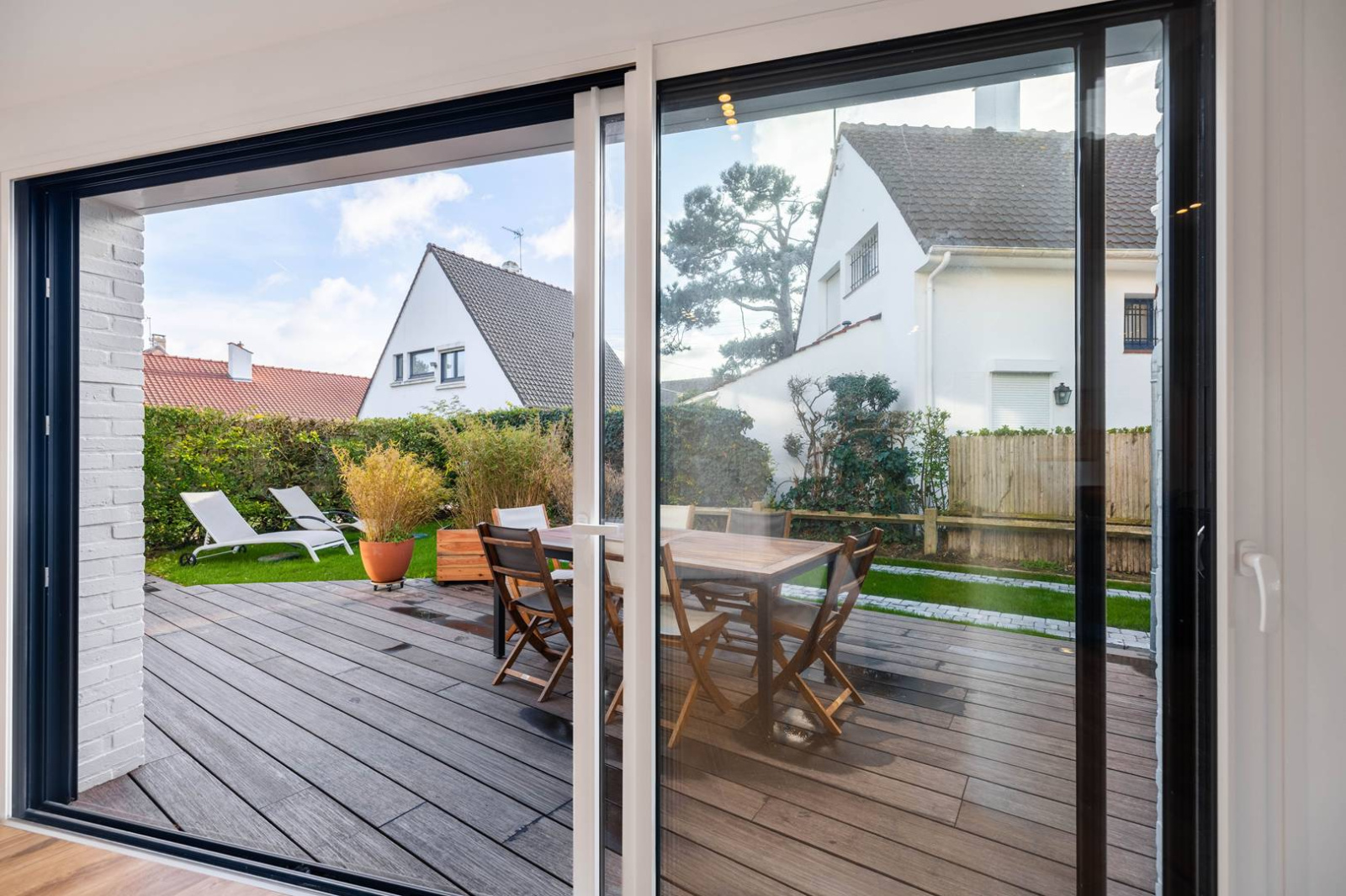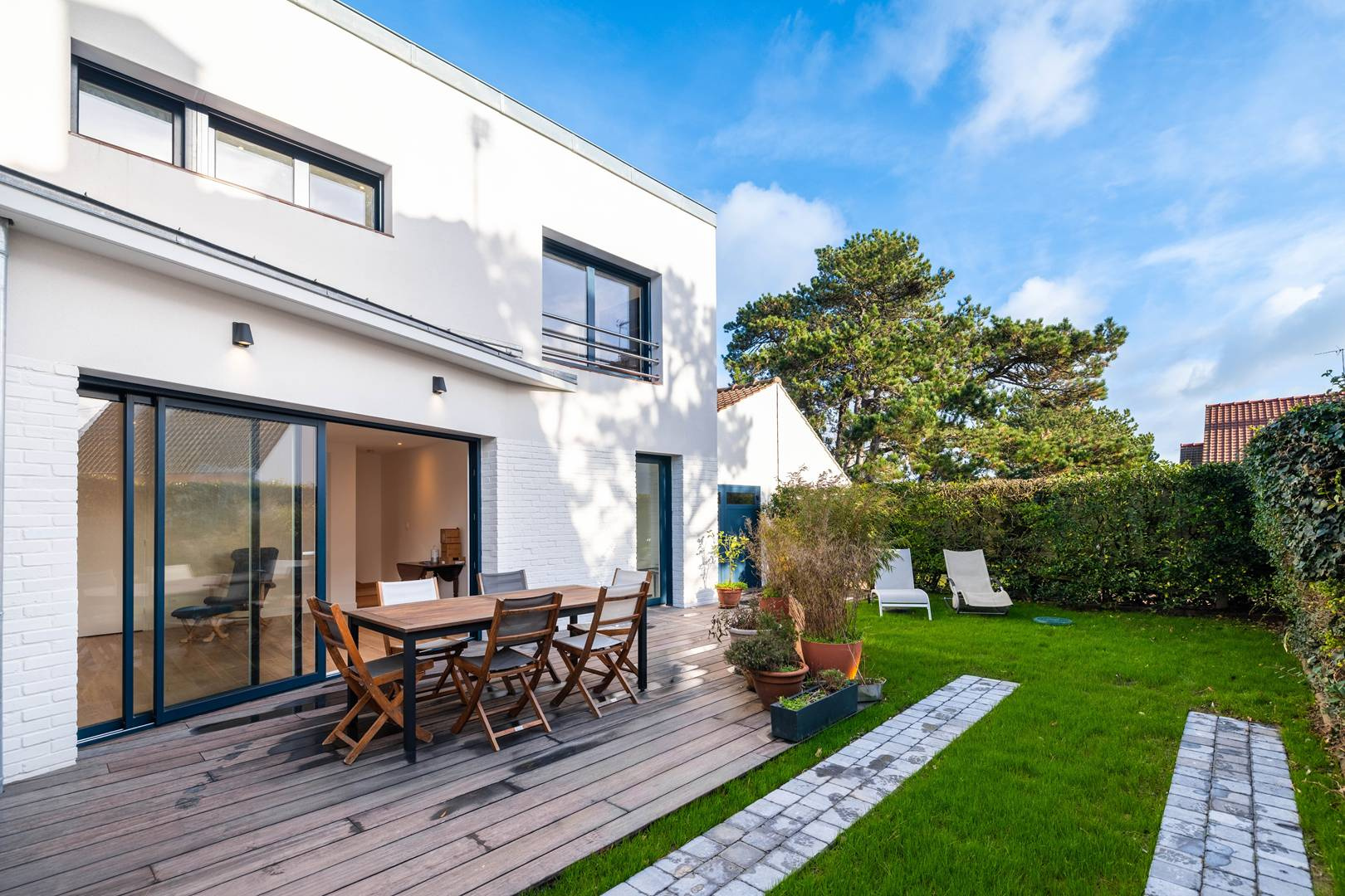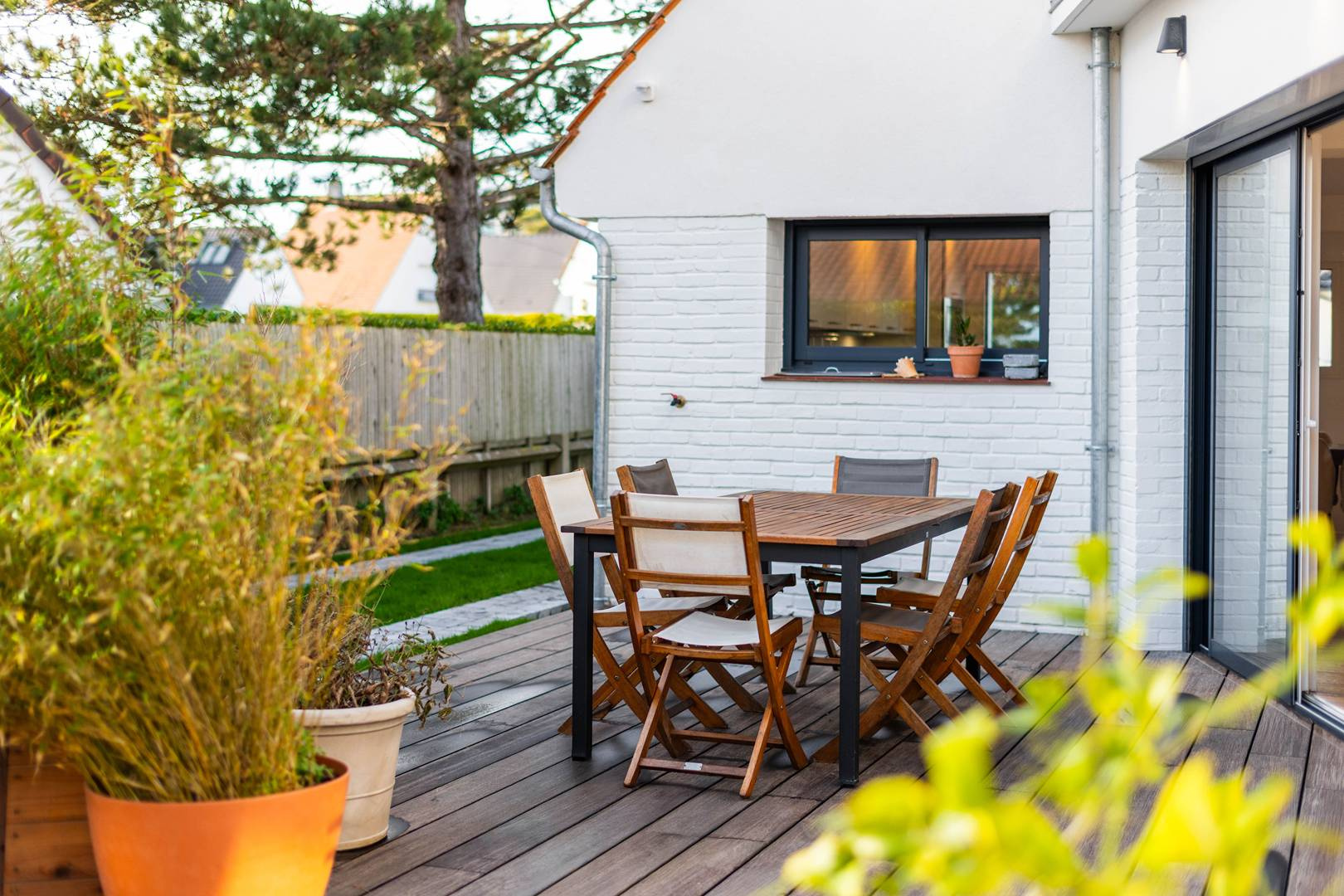 Terrasse exposé Sud avec mobilier et barbecue.
