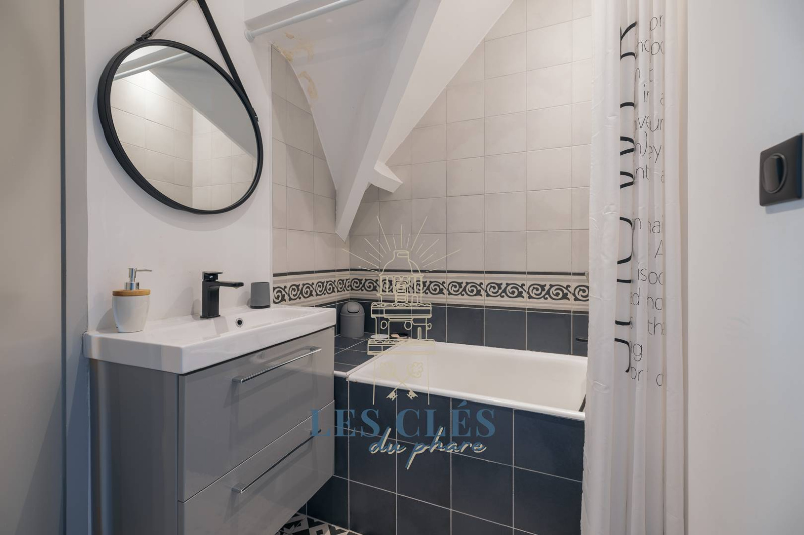 Chambre double (lit 160) avec baignoire sabot + rangements.