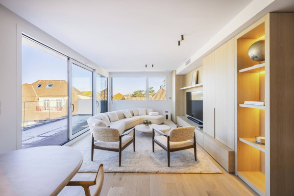 RDC : Entrée avec rangements donnant sur le salon / séjour.