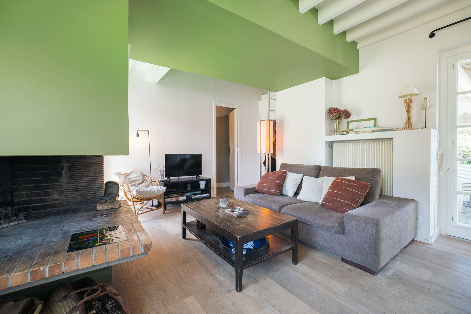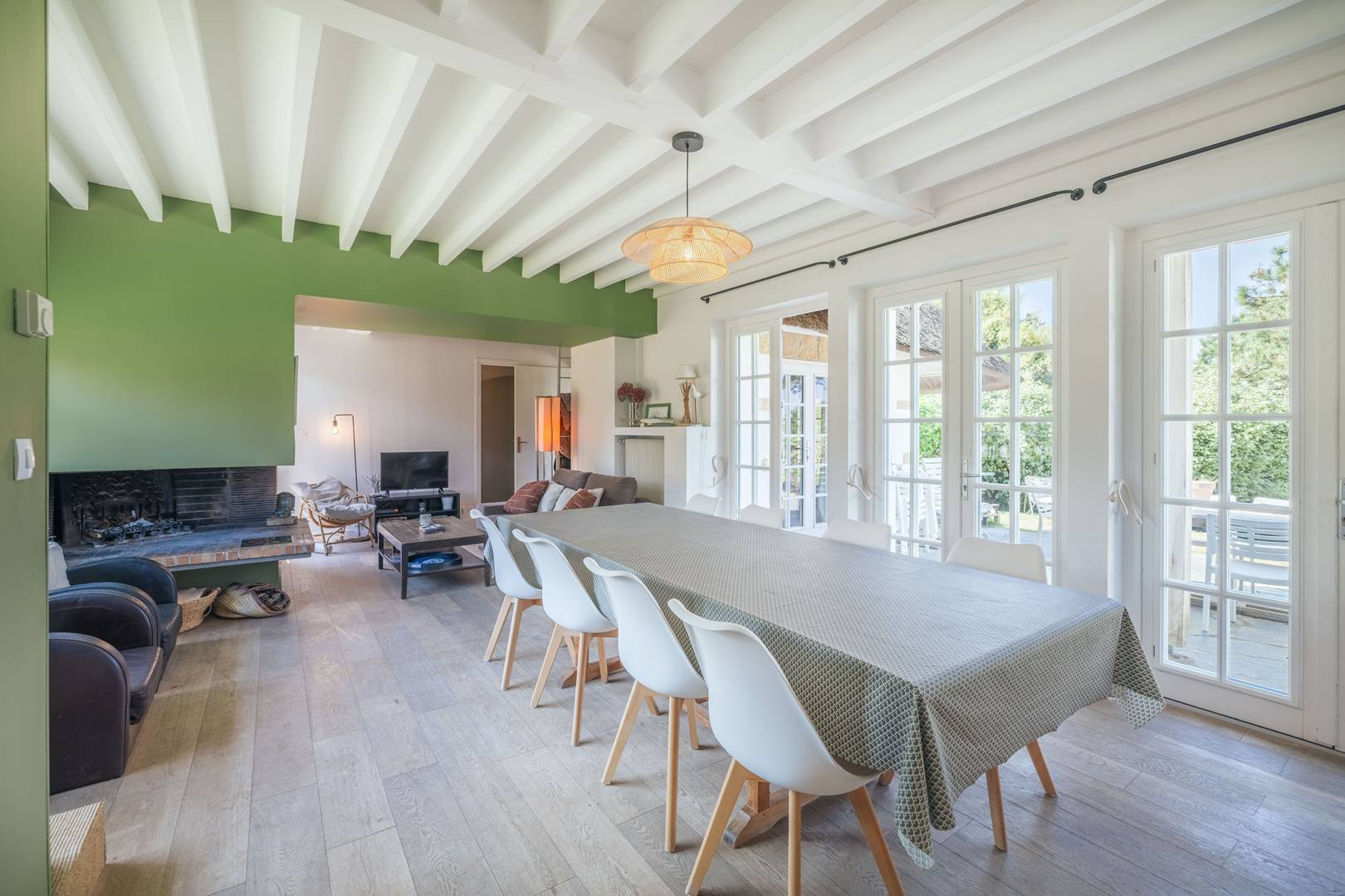 Salle à manger avec cheminée.