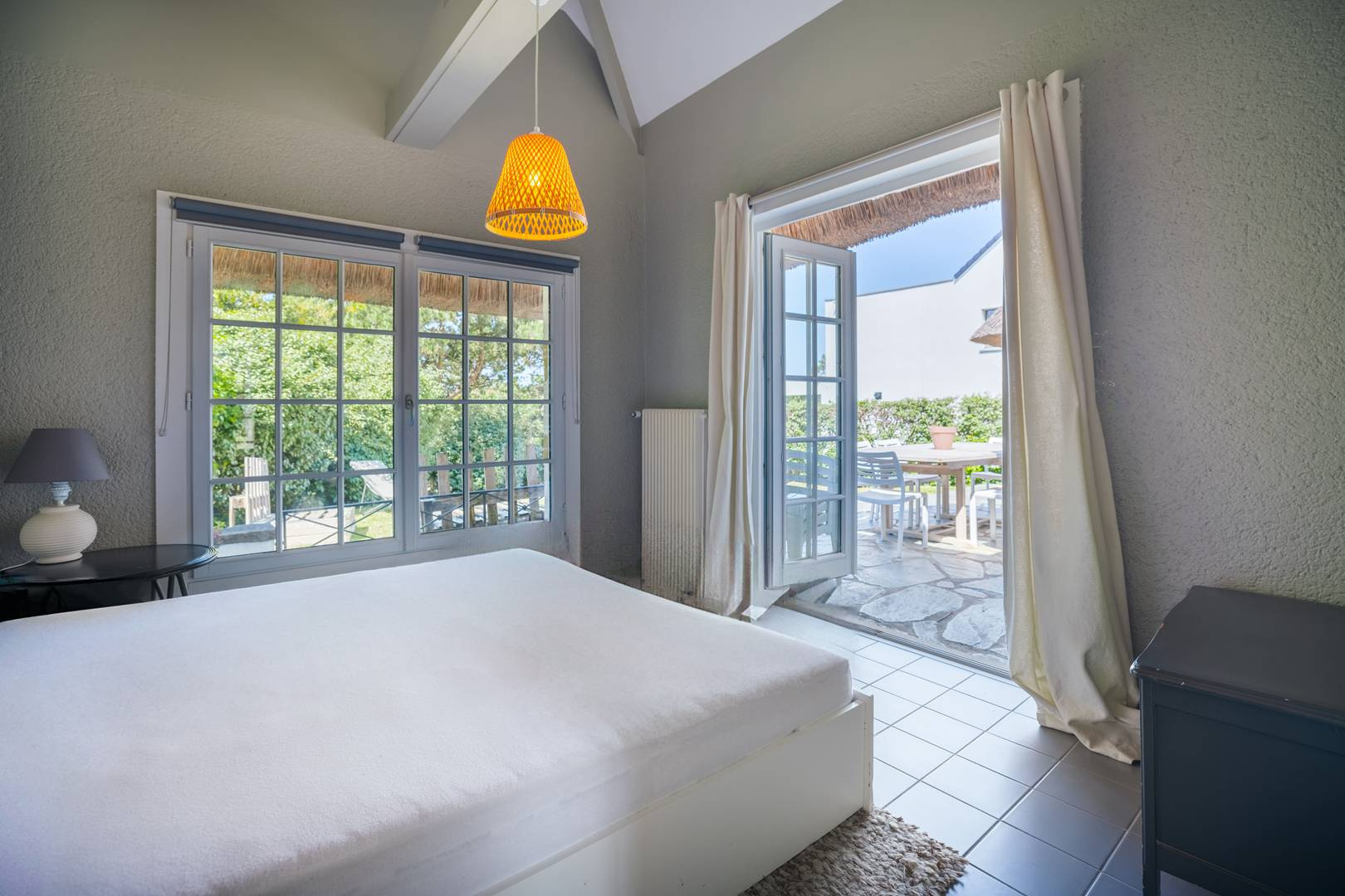 1 Chambre avec lit double (140x200cm) avec placard et accès terrasse.