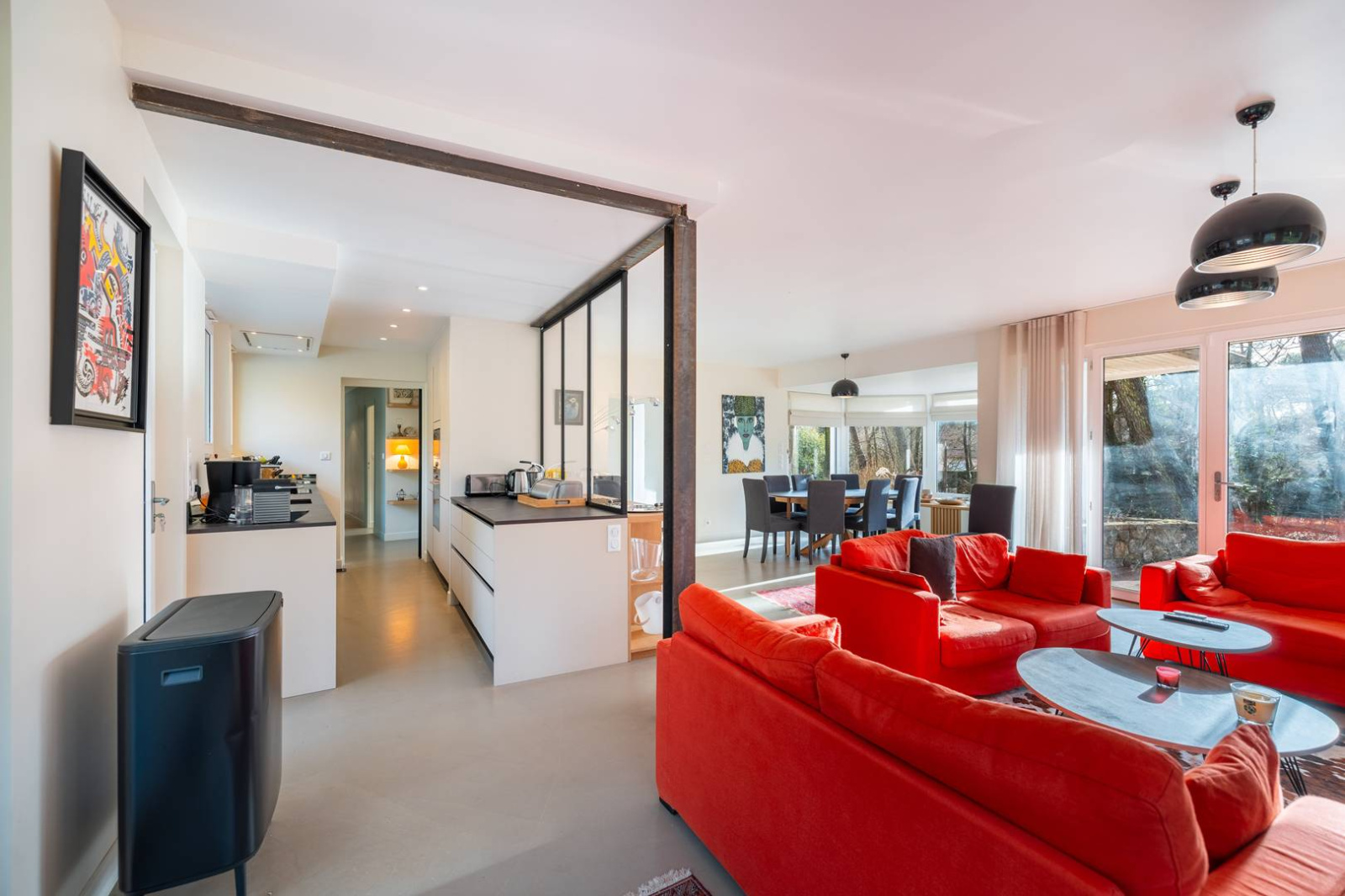 La maison se compose d'un grand séjour, cuisine équipée avec cafetière Nespresso, 5 chambres: 1 chambres parentales (lit 160x200) avec salle de bain, une 2e chambres parentale (lit:180x200) avec salle de bain . 1 chambre (lit 160x200) avec salle de douches, 2 chambres doubles (160x200) avec salle de douches commune.