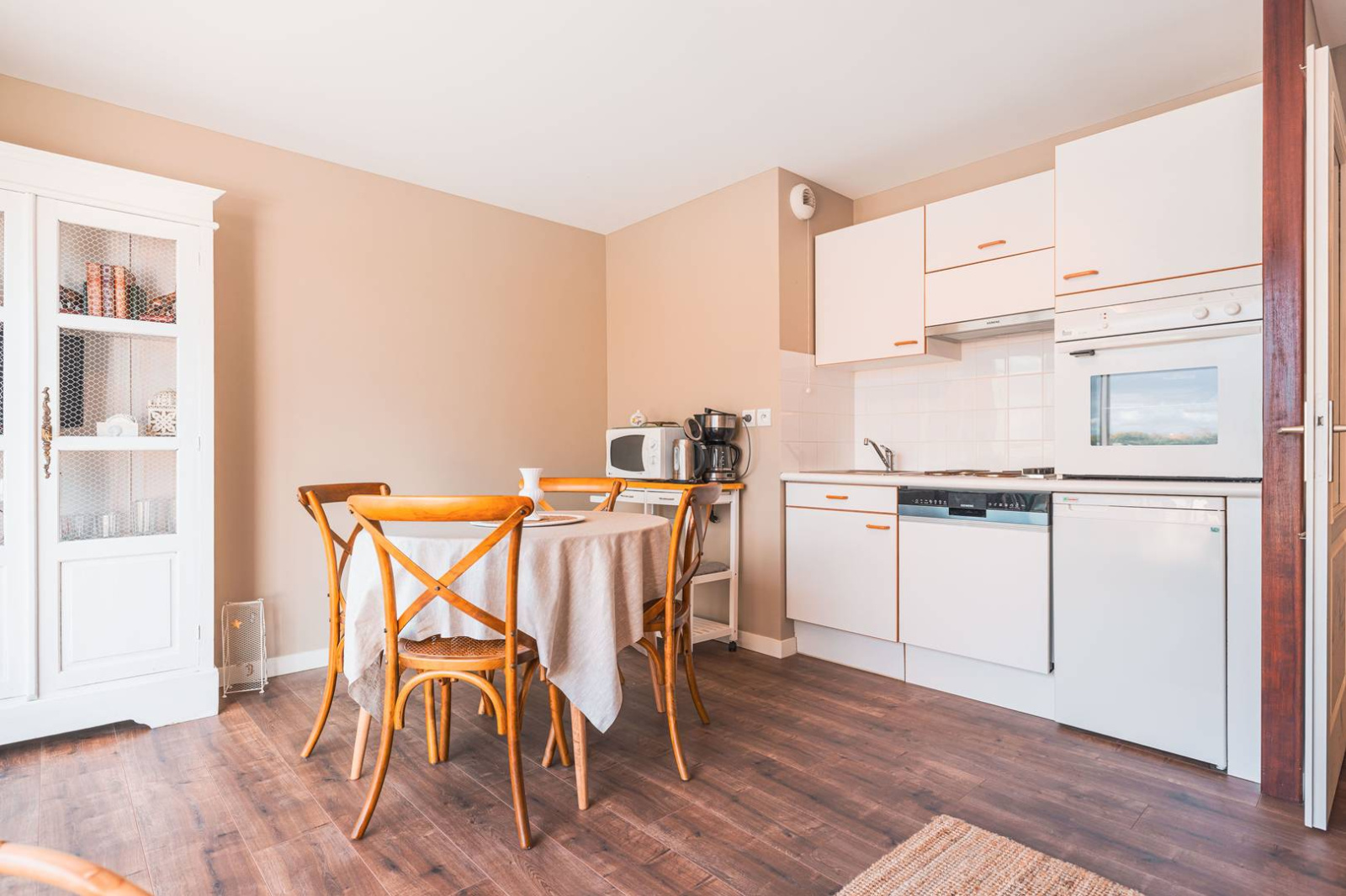 Cuisine ouverte avec cafetière filtre.