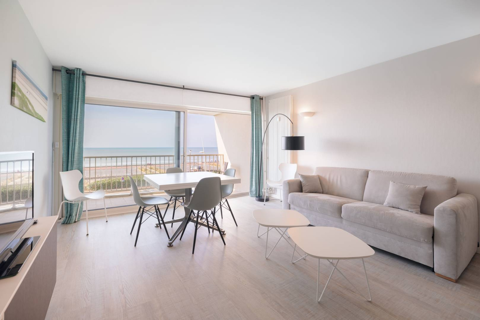 Salon/séjour et canapé convertible (160x200cm) avec balcon.