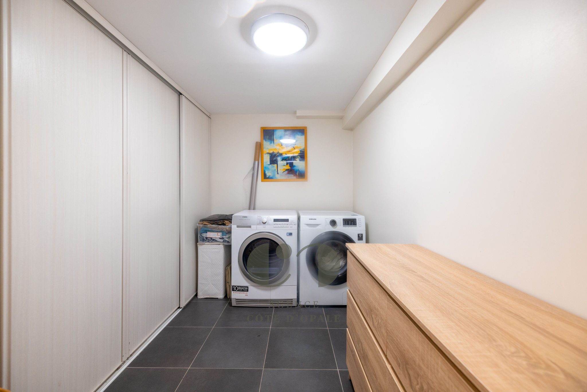 Le sous-sol complet se compose d’un grand vestiaire, d’une lingerie, d’un atelier, d’une vaste pièce de stockage avec point d’eau ainsi que d’un garage.