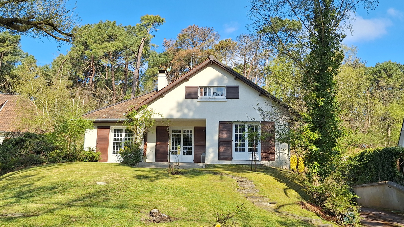 Nichée dans une charmante allée au cœur de la forêt, à seulement quelques minutes des commerces et habitée toute l’année, cette villa à rafraichir séduit immédiatement par son environnement paisible et son atmosphère chaleureuse. Édifiée sur un sous-sol complet, la maison offre de beaux volumes et un fort potentiel d’aménagement.