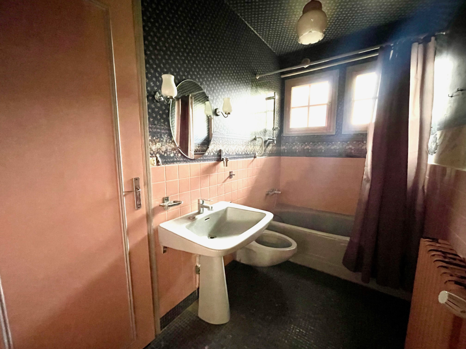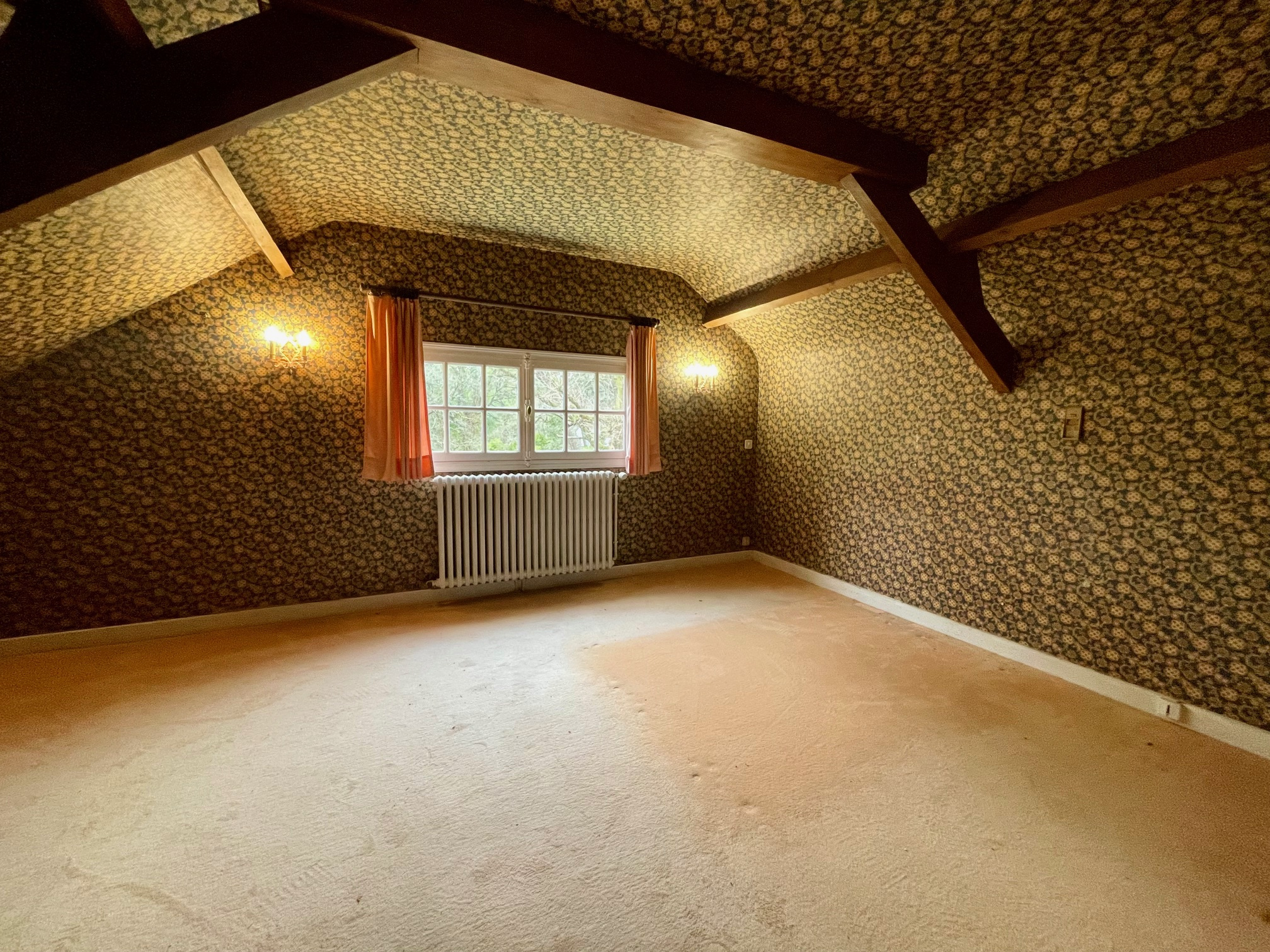 À l’étage : un beau palier pourrait acceuilir une seconde salle de bains, 2 grandes chambres dont une avec lavabo, wc et lingerie