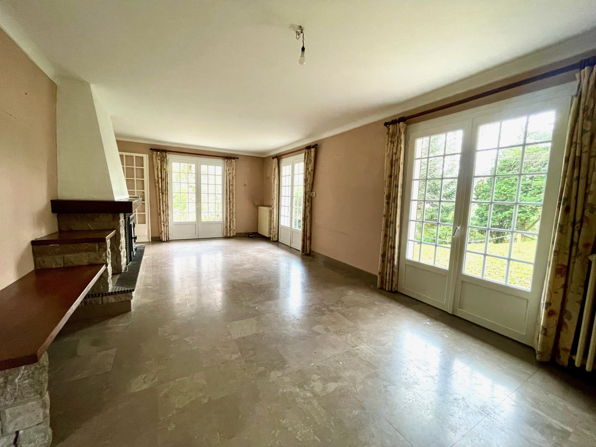 Dès l’entrée, vous découvrirez une spacieuse et lumineuse entrée desservant un agréable séjour avec cheminée.