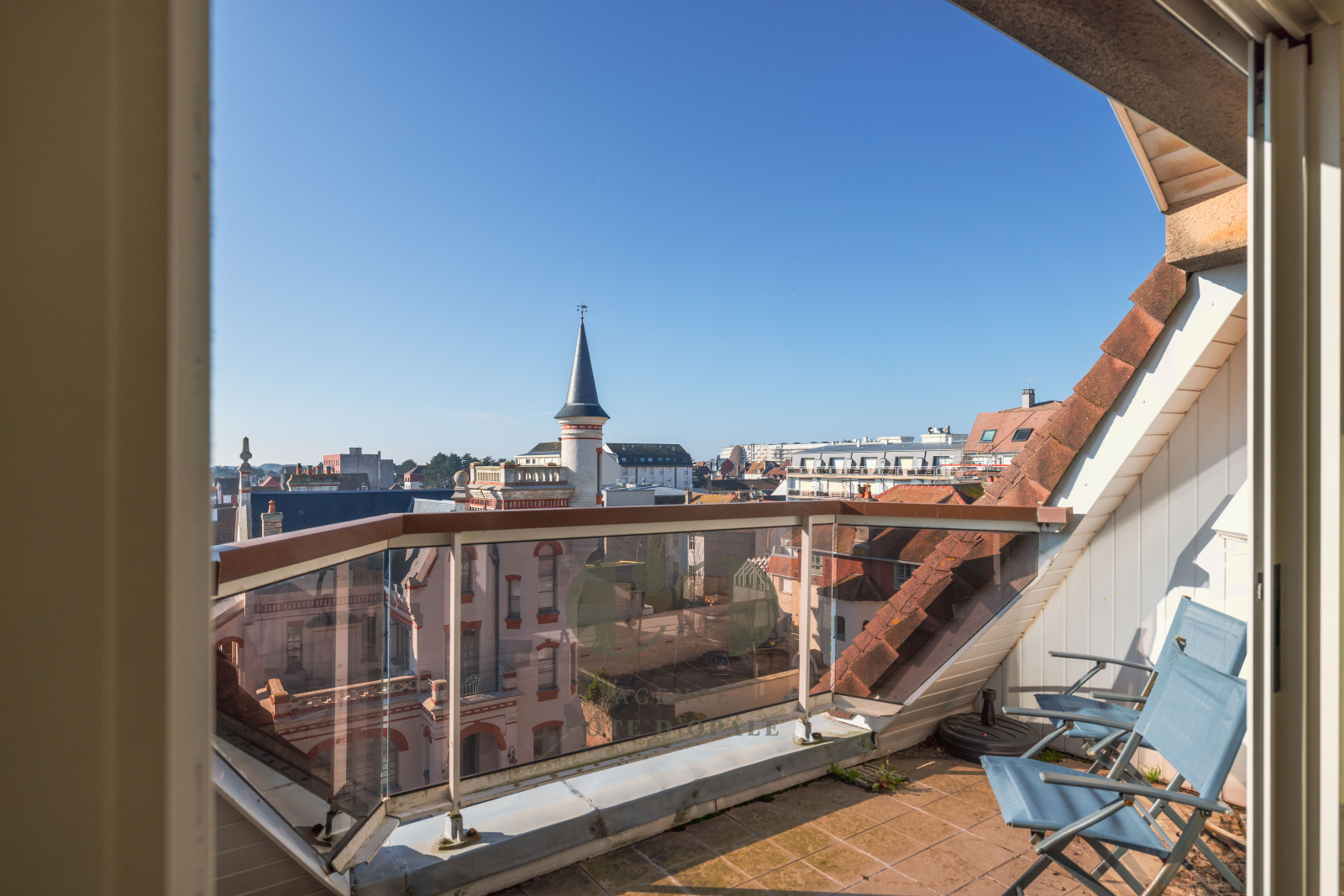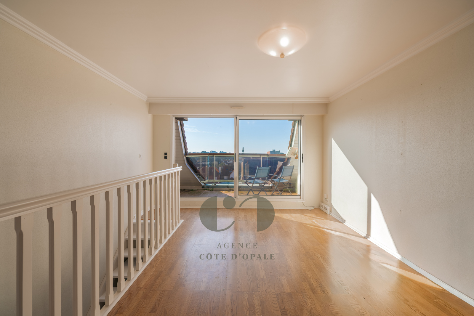 Au coeur de la ville, appartement en duplex de 51m2 exposé plein sud; Il est composé d'une entrée avec placards et un coin cabine, les wc et salle de bain. A l'étage un séjour avec kitchenette s'ouvre sur une terrasse avec une vue exceptionnelle. Cave incluse et possibilité de garage en sous sol en option. Des travaux de rafraichissement sont à prevoir .